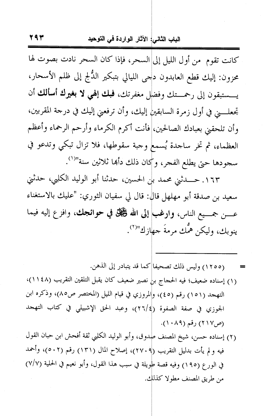 (¬١) إسناده ضعيف؛ فيه الحجاج بن نصير ضعيف كان يقبل التلقين التقريب (١١٤٨)، التهجد (١٥١) رقم (٤٥)، والمروزي في قيام الليل (المختصر ص ٨٥)، وذكره ابن الجوزي في صفة الصفوة (٤/ ٢٦)، وعبد الحق الإشبيلي في كتاب التهجد (ص ٢١٧) رقم (١٠٨٩).