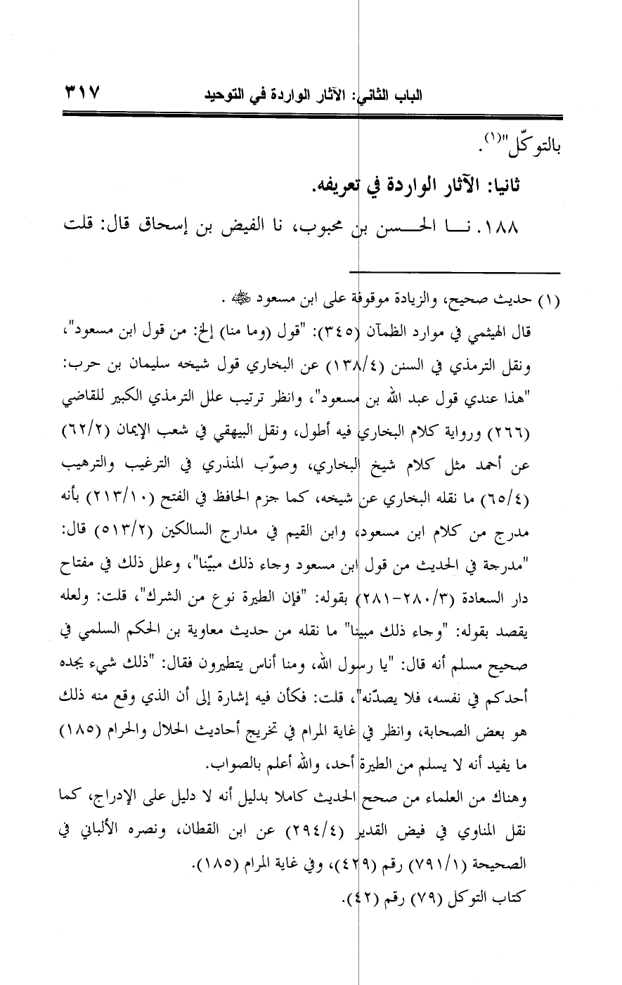 كتاب التوكل (٧٩) رقم (٤٢).
