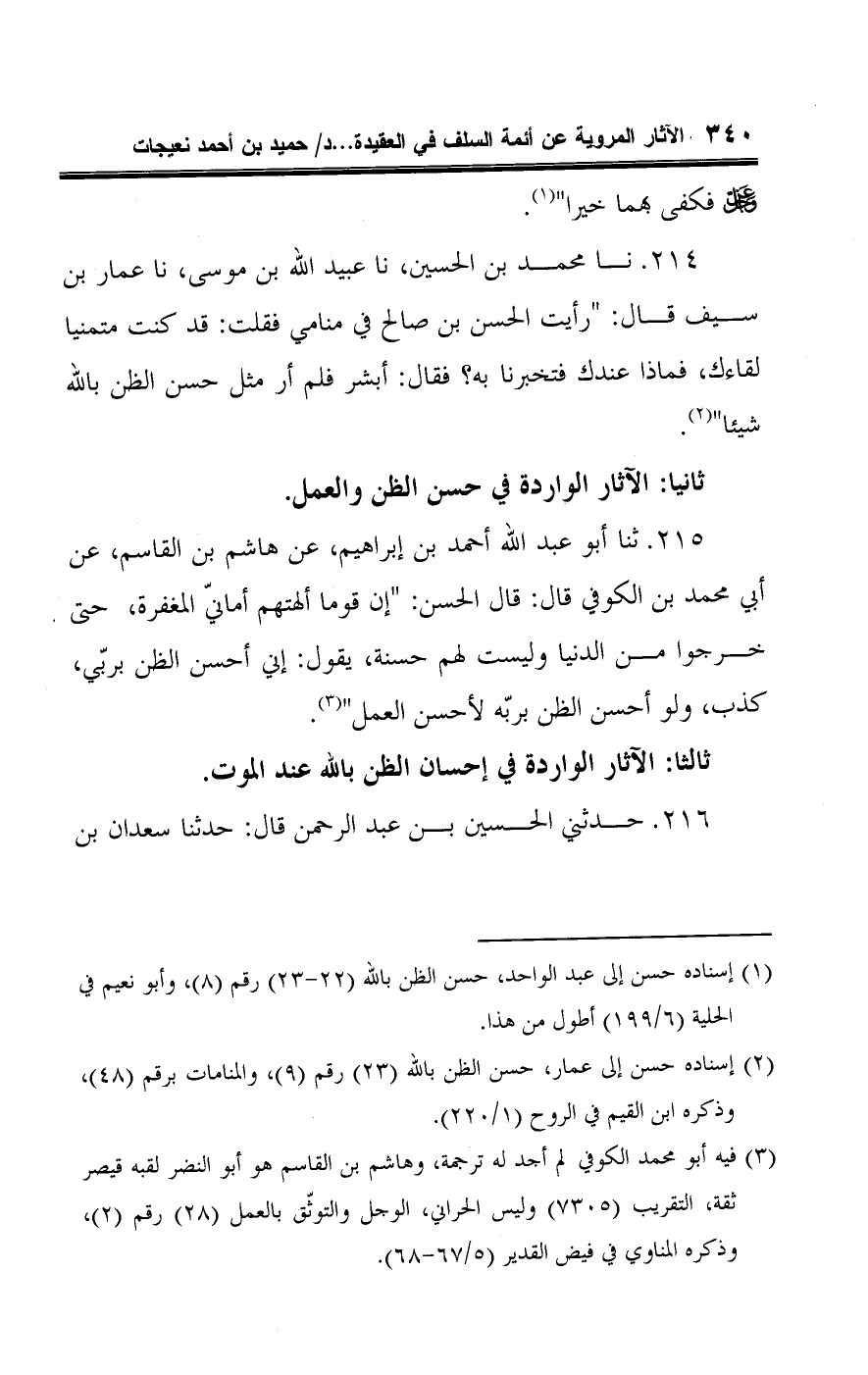 ثانيا: الآثار الواردة في حسن الظن والعمل.