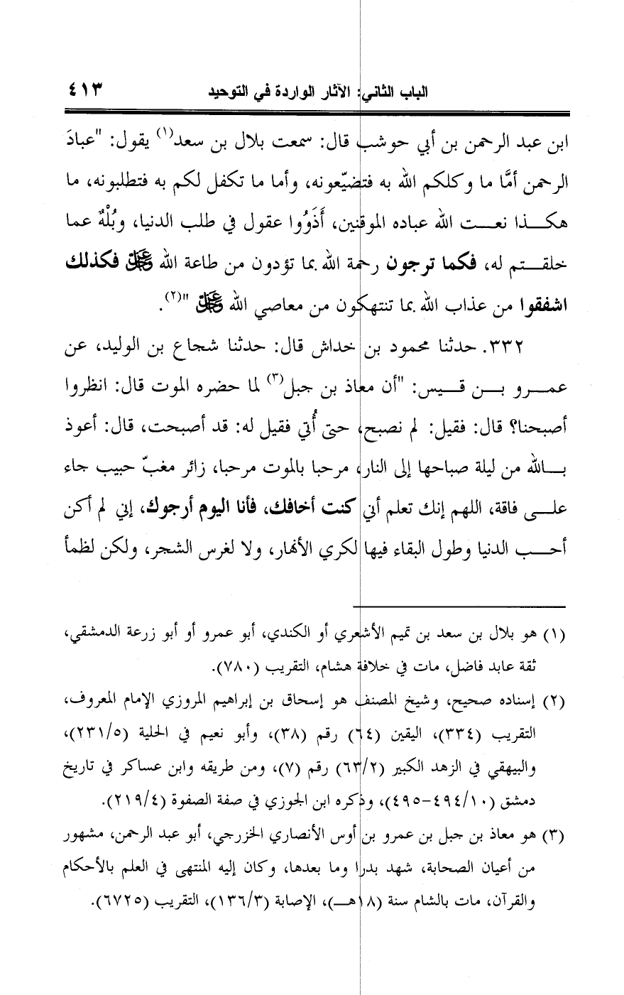 (¬١) هو بلال بن سعد بن تميم الأشعري أو الكندي، أبو عمرو أو أبو زرعة الدمشقي، ثقة عابد فاضل، مات في خلافة هشام، التقريب (٧٨٠).