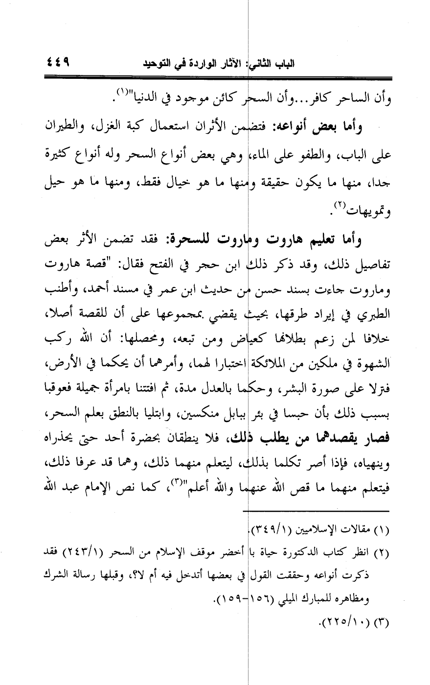 (¬٢) انظر كتاب الدكتورة حياة با أخضر موقف الإسلام من السحر (١/ ٢٤٣) فقد ذكرت أنواعه وحققت القول في بعضها أتدخل فيه أم لا؟ ، وقبلها رسالة الشرك ومظاهره للمبارك الميلي (١٥٦ - ١٥٩).