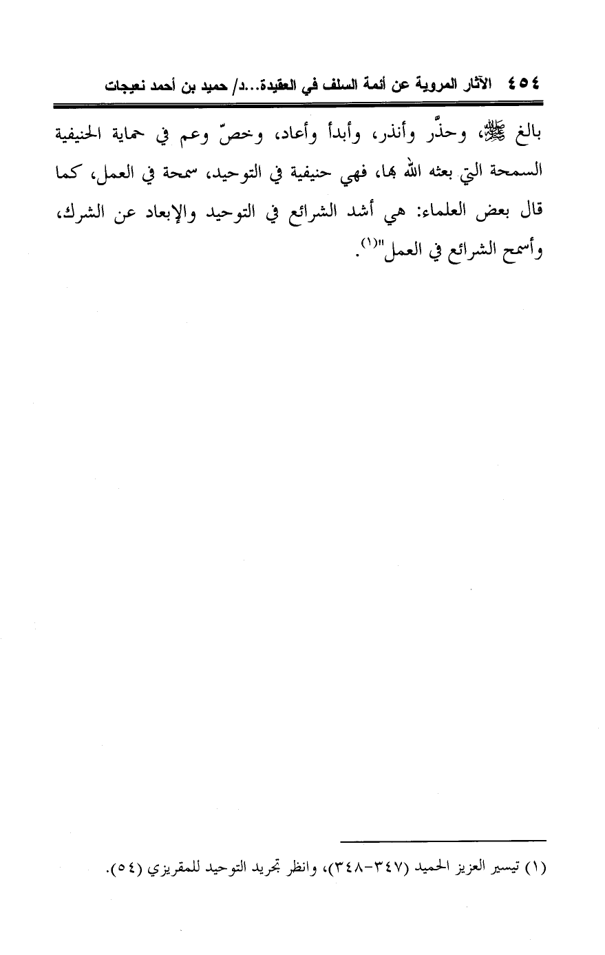 (¬١) تيسير العزيز الحميد (٣٤٧ - ٣٤٨)، وانظر تجريد التوحيد للمقريزي (٥٤).
