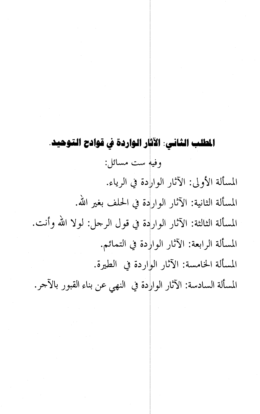 المطلب الثاني: الآثار الواردة في قوادح التوحيد.
