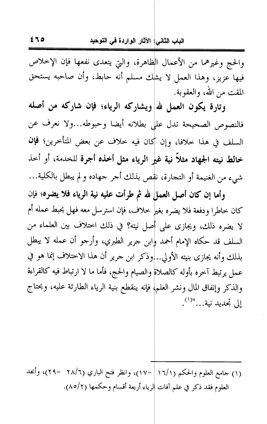 (¬١) جامع العلوم والحكم (١/ ١٦ - ١٧)، وانظر فتح الباري (٦/ ٢٨ - ٢٩)، وأبجد العلوم فقد ذكر في علم آفات إلرياء أربعة أقسام وحكمها (٢/ ٨٥).