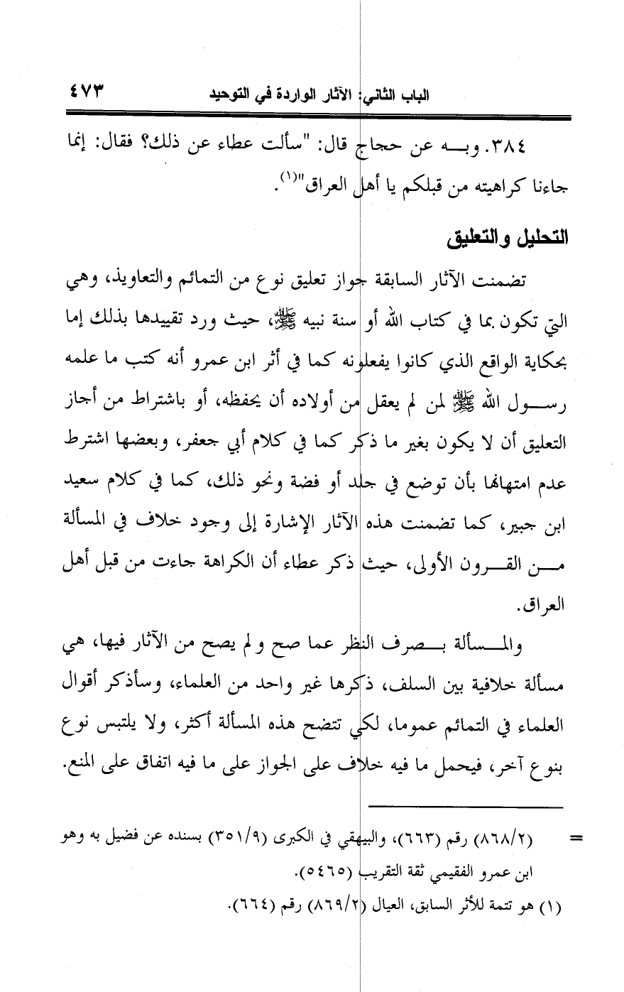٣٨٤ - وبه عن حجاج قال: "سألت عطاء عن ذلك؟ فقال: إنما جاءنا كراهيته من قبلكم يا أهل العراق" (¬١).