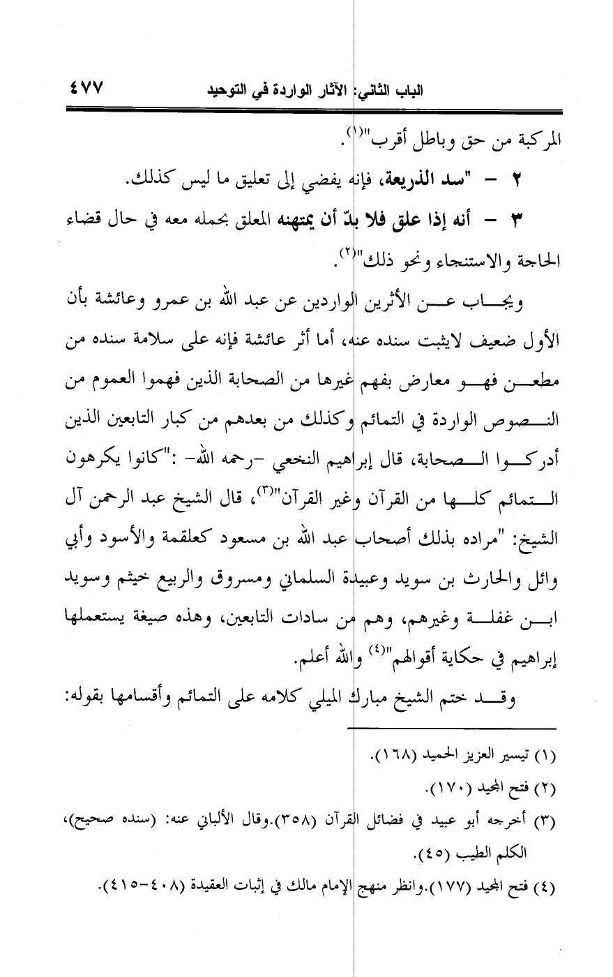 (¬٤) فتح المجيد (١٧٧). وانظر منهج الإمام مالك في إثبات العقيدة (٤٠٨ - ٤١٥).