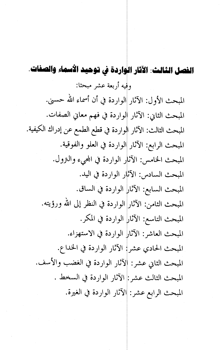 الفصل الثالث: الآثار الواردة في توحيد الأسماء والصفات.