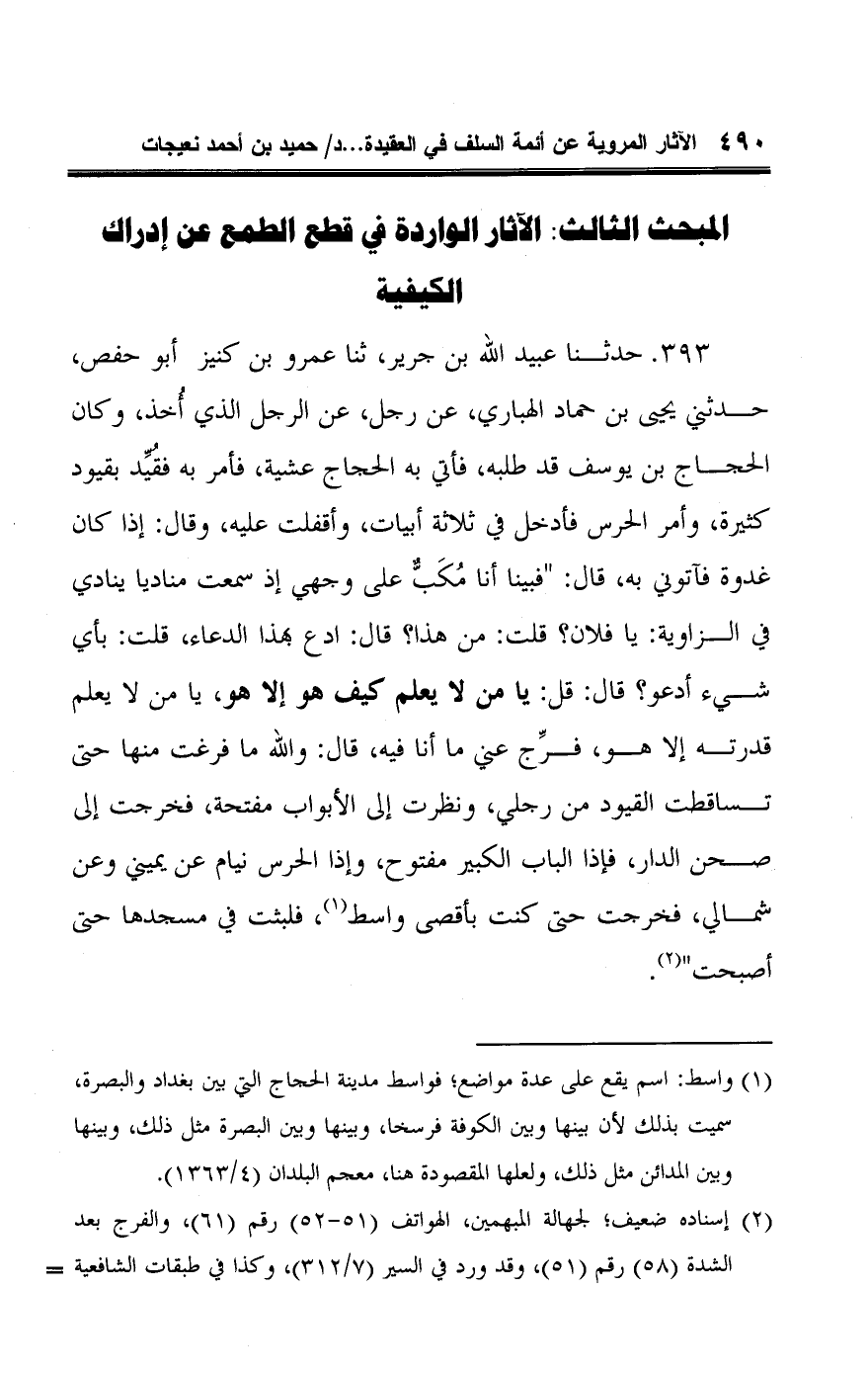المبحث الثالث: الآثار الواردة في قطع الطمع عن إدراك الكيفية