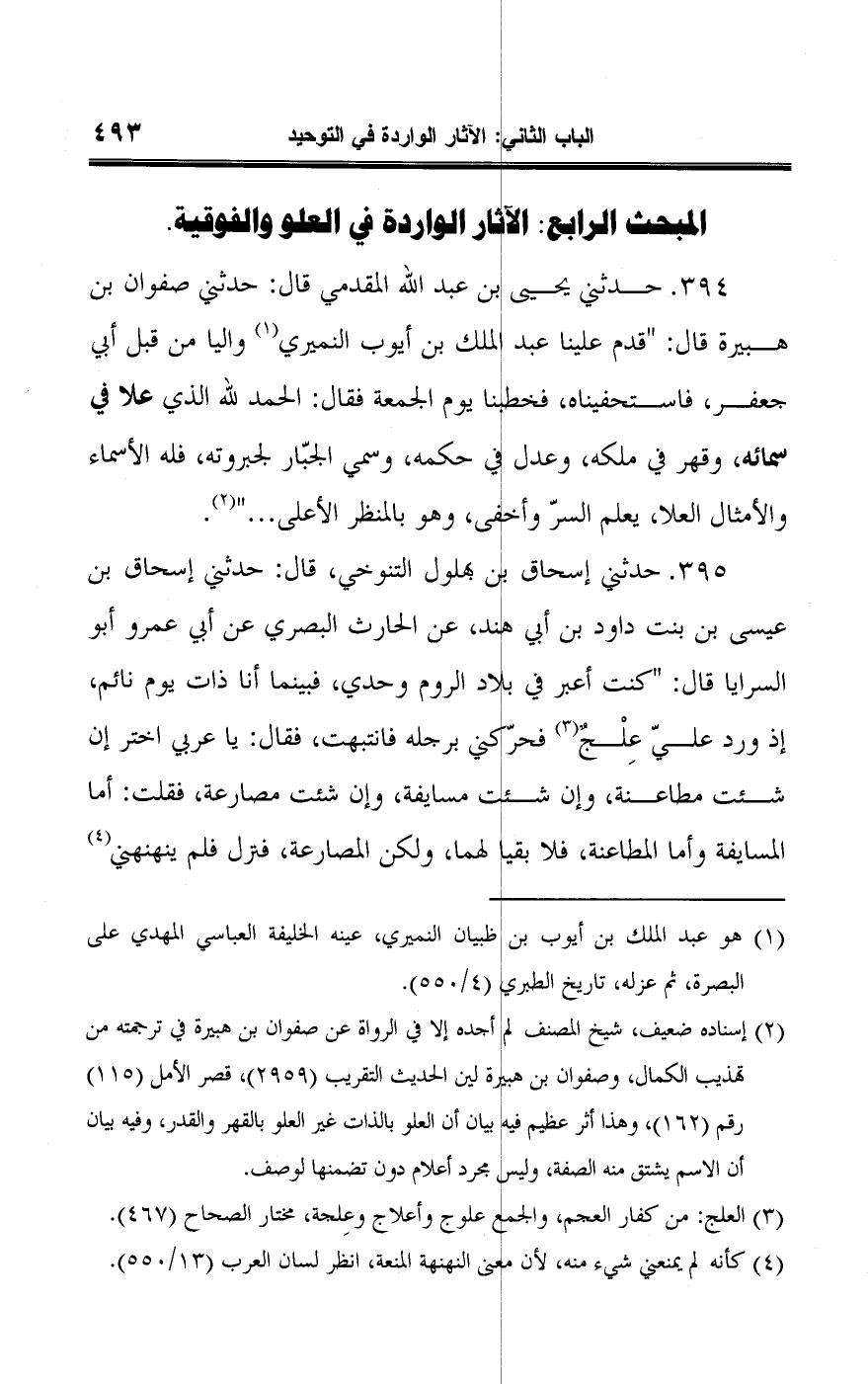 المبحث الرابع: الآثار الواردة في العلو والفوقية.