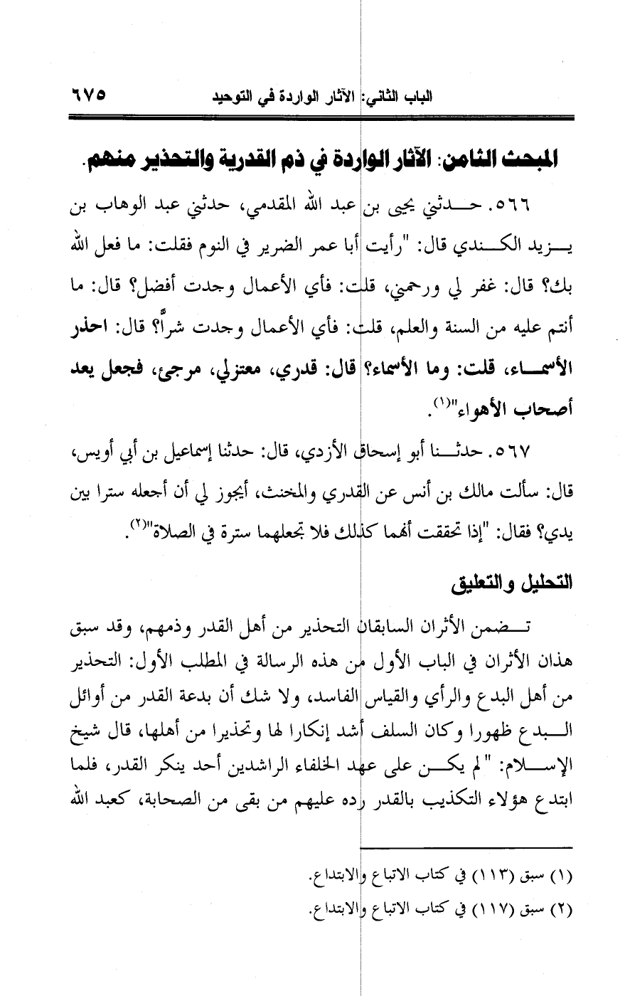 المبحث الثامن: الآثار الواردة في ذم القدرية والتحذير منهم.