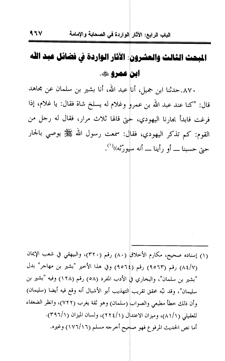 المبحث الثالث والعشرون: الآثار الواردة في فضائل عبد اللَّه ابن عمرو -رضي اللَّه عنه-.