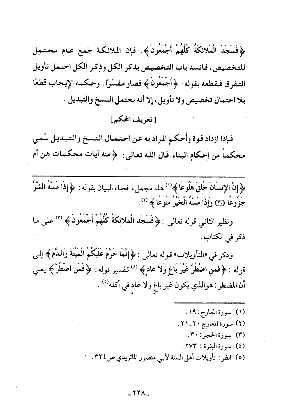 وذكر في التأويلات" قوله تعالى: {إِنَّمَا حَرَّمَ عَلَيْكُمْ الْمَيْتَةَ وَالدَّمَ} إلى قوله: {فَمَنْ اضْطُرَّ غَيْرَ بَاغٍ وَلا عَادٍ} تفسير قوله: {فَمَنْ اضْطُرَّ} يعني أن المضطر: هو الذي يكون غير باغ ولا عاد في أكله.