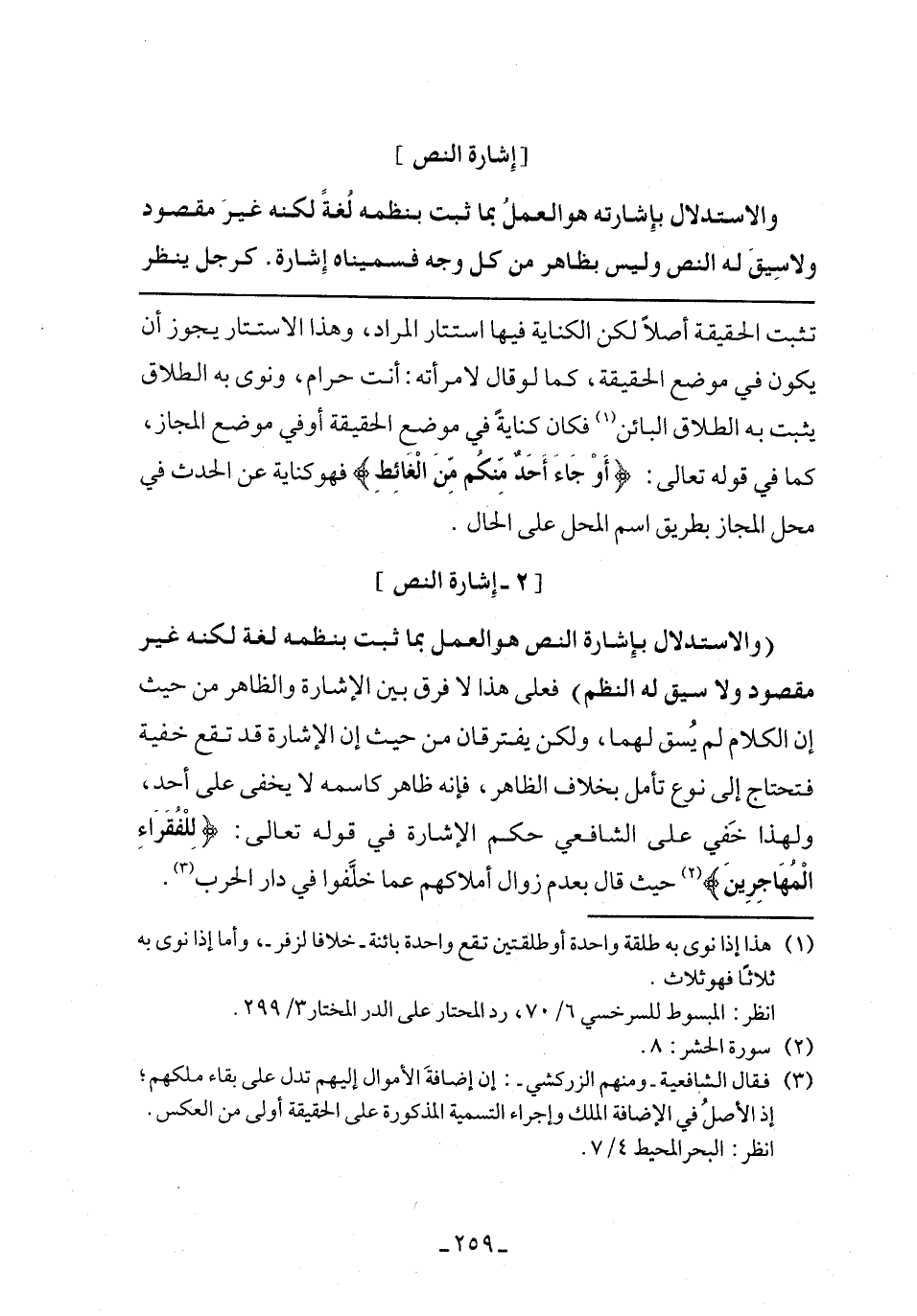(والاستدلال بإشارة النص هو العمل بما ثبت بنظمه لغة لكنه غير مقصود ولا سيق له النظم)