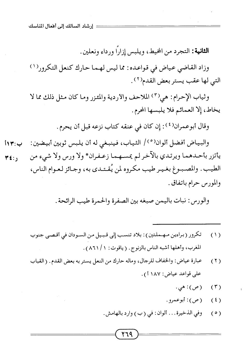 (¬2) عبارة عياض: والخفاف للرجال، وماله حارك من النعل يستر به بعض القدم. (القباب على قواعد عياض: 187 أ).