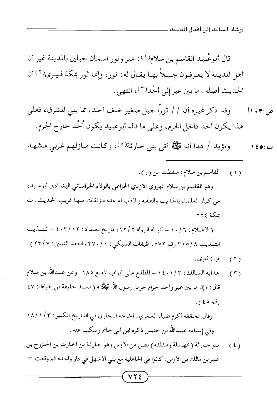 (¬3) هداية السالك: 3/ 1401 - المطلع على أبواب المقنع 185. وعن عبد الله بن سلام قال: "إِن ما بين عير وأحد حرام حرمة رسول الله - صلى الله عليه وسلم -" (مسند خليفة بن خياط: 47 رقم 45).