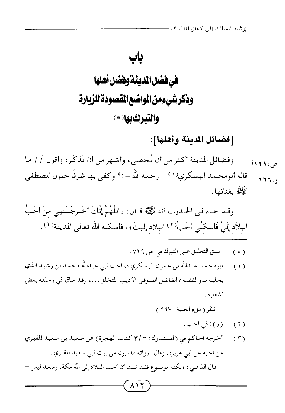 باب: في فضل المدينة وفضل أهلها وذكر شيء من المواضع المقصودة للزيارة والتبرك بها (*)