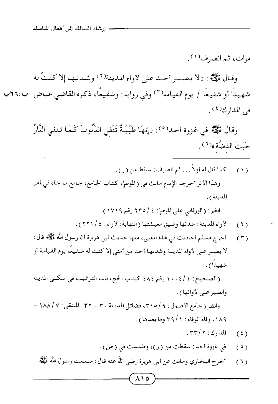 وانظر (جامع الأصول: 9/ 315، فضائل المدينة 30 - 32. المنتقى: 7/ 188 - 189، وفاء الوفاء: 1/ 39 وما بعدها).