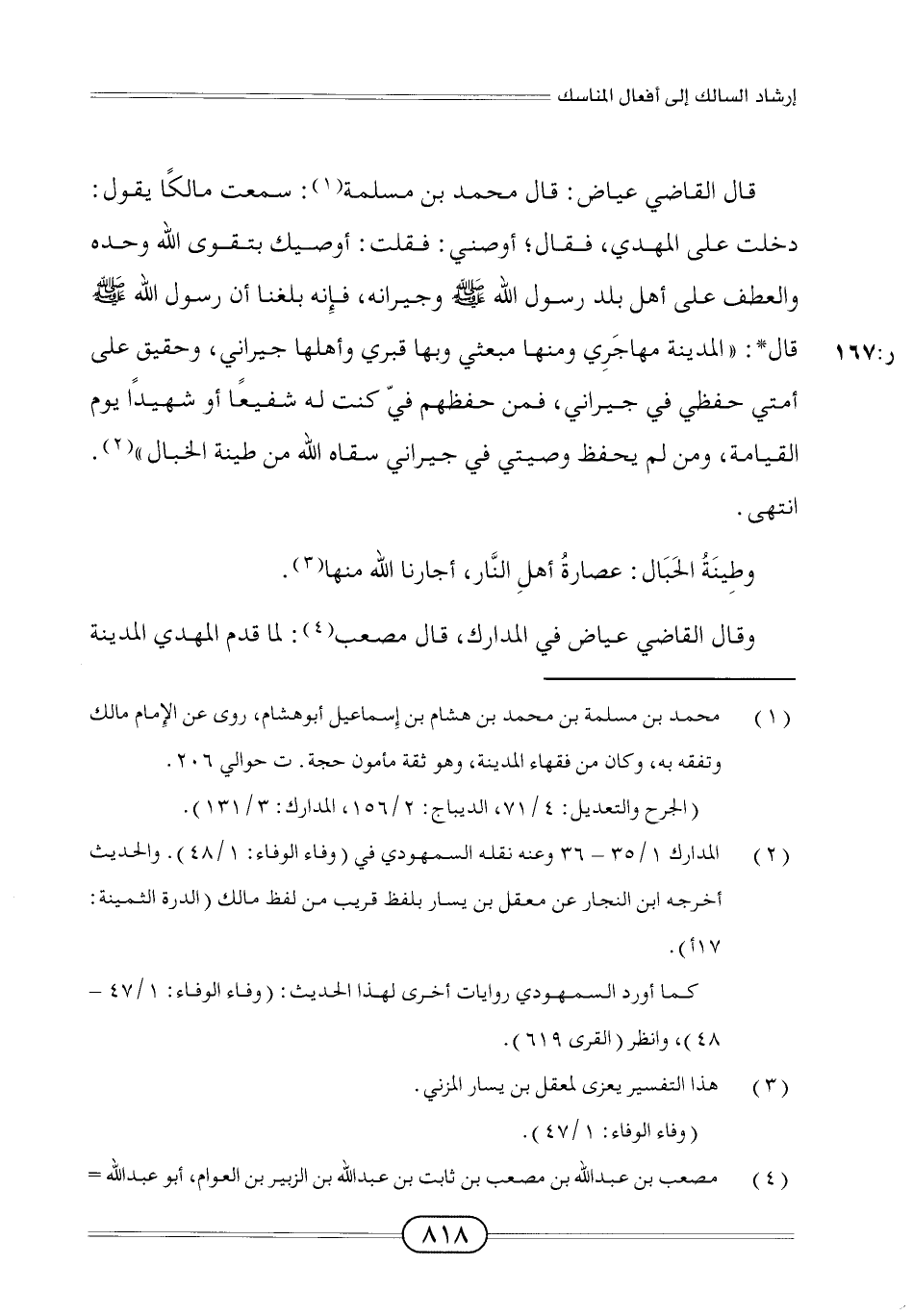 وقال القاضي عياض في المدارك، قال مصعب (¬4): لما قدم المهدي المدينة