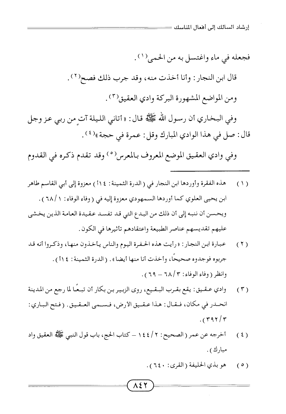 (¬4) أخرجه عن عمر (الصحيح: 2/ 144 - كتاب الحج، باب قول النبي - صلى الله عليه وسلم - العقيق واد مبارك).