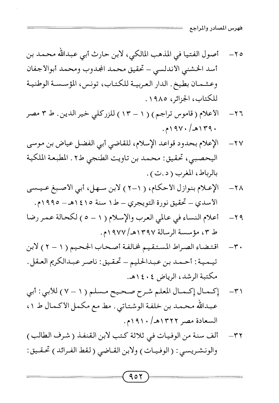 25 - أصول الفتيا في المذهب المالكي، لابن حارث أبي عبد الله محمد بن أسد الخشني الأندلسي - تحقيق محمد المجدوب ومحمد أبو الأجفان وعثمان بطيخ. الدار العربية للكتاب، تونس، المؤسسة الوطنية للكتاب، الجزائر، 1985.