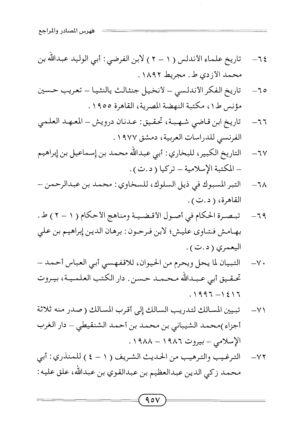 71 - تبيين المسالك لتدريب السالك إِلى أقرب المسالك (صدر منه ثلاثة أجزاء) محمد الشيباني بن محمد بن أحمد الشنقيطي - دار الغرب الإِسلامي - بيروت 1986 - 1988.