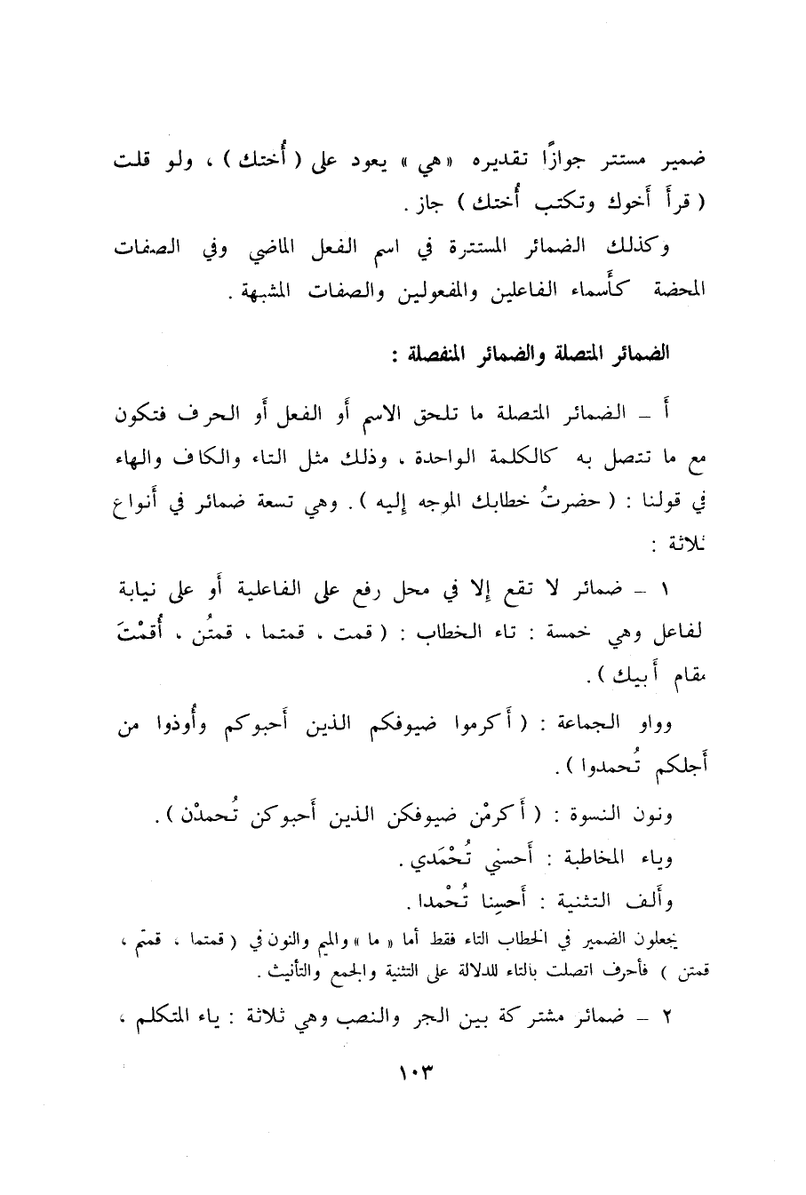 وكذلك الضمائر المستترة في اسم الفعل الماضي وفي الصفات المحضة كأَسماء الفاعلين والمفعولين والصفات المشبهة.