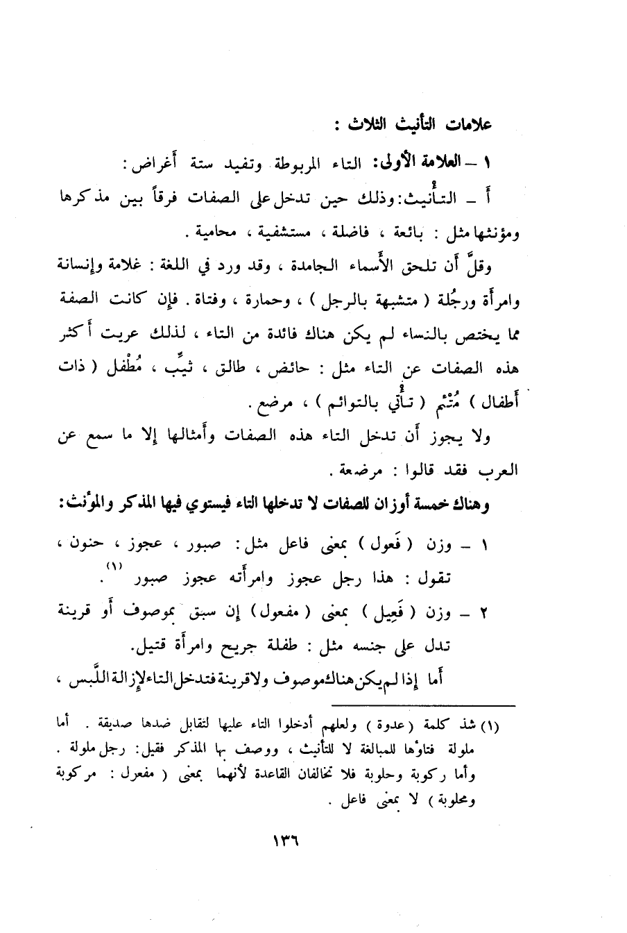 1- ذ كلمة "عدوة" ولعلهم أدخلوا التاء عليها لتقابل ضدها صديقة. أما ملولة فتاؤها للمبالغة لا للتأنيث، ووصف بها المذكر فقيل: رجل ملولة. وأما ركوبة وحلوبة فلا تخالفان القاعدة لأنهما بمعنى "مفعول: مركوبة ومحلوبة" لا بمعنى فاعل.