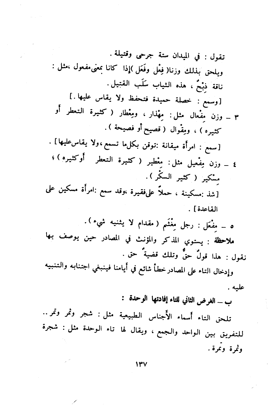 4- وزن مِفْعيل مثل: مِعْطير "كثيرة التعطر أو كثيره"؛ مِسْكير "كثير السكْر".