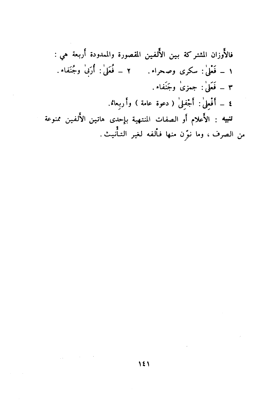 1- فَعْلى: سكرى وصحراء 2- فُعَلى: أُرَبى وجُنَفاء.