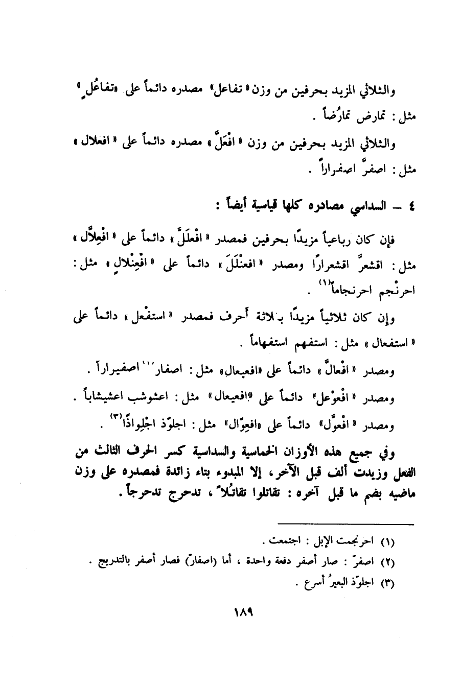 ومصدر "افْعالَّ" دائماً على "افعيعال" مثل: اصفار2 اصفيراراً.