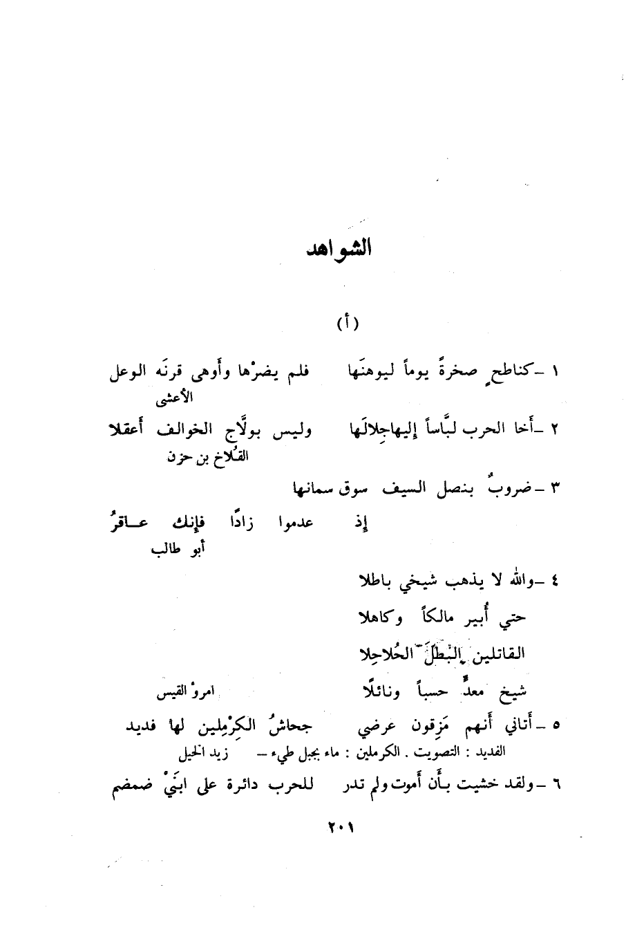 1- كناطحٍ صخرةً يوماً ليوهنَها ... فلم يضرْها وأَوهى قرنَه الوعل