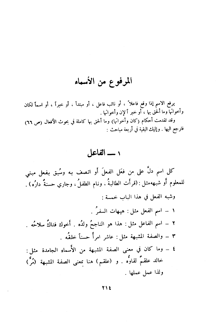 كل اسم دلَّ على من فعَل الفعلَ أَو اتصف به وسُبق بفعل مبني للمعلوم أَو شبهه مثل: "قرأت الطالبةُ، ونام الطفلُ، وجاري حسنةٌ دارُه".