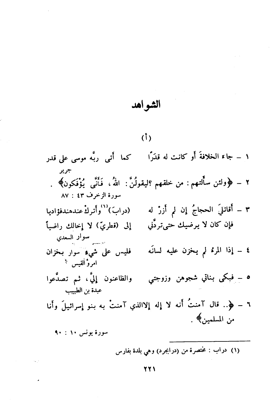 3- أَقاتليَ الحجاجُ إِن لم أَزرْ له ... "درابَ"1 وأَتركْ عند هند فؤاديا