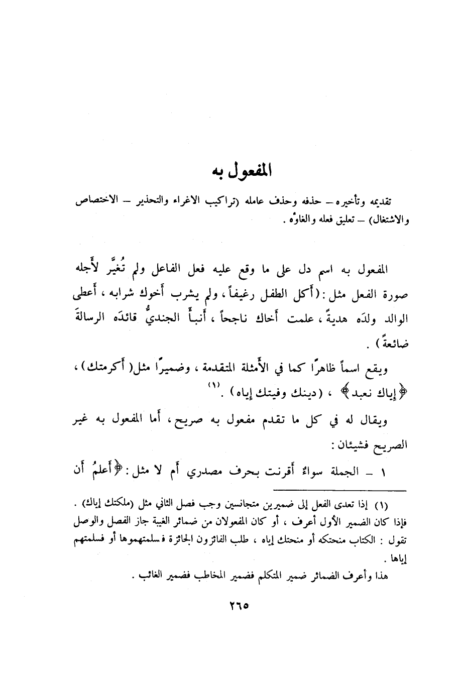 ويقال له في كل ما تقدم مفعول به صريح، أَما المفعول به غير الصريح فشيئان: