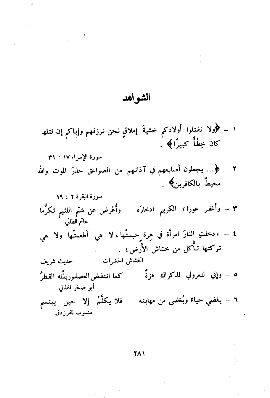 4- "دخلتِ النارَ امرأَة في هِرة حبستْها، لا هي أَطعمتها ولا هي تركتها تأْكل من خشاش الأَرض".الحشاش الحشرات. حديث شريف