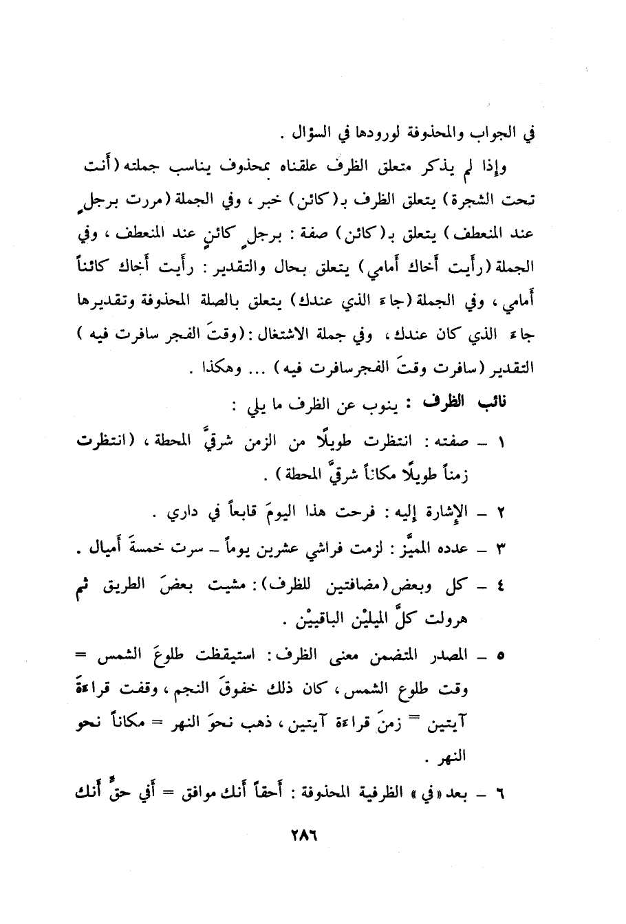 5- المصدر المتضمن معنى الظرف: استيقظت طلوعَ الشمس = وقت طلوع الشمس، كان ذلك خفوق النجم، وقفت قراءةَ آيتين = زمن قراءَة آيتين، ذهب نحوَ النهر = مكاناً نحو النهر.