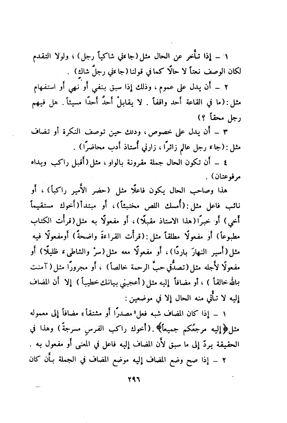 4- أَن تكون الحال جملة مقرونة بالواو، مثل "أَقبل راكب ويداه مرفوعتان".