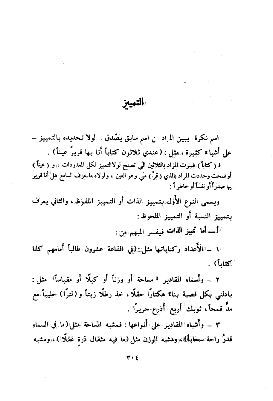 اسم نكرة يبين المراد من اسم سابق يصْدق - لولا تحديده بالتمييز - على أشياء كثيرة، مثل: "عندي ثلاثون كتاباً أَنا بها قريرٌ عيناً".