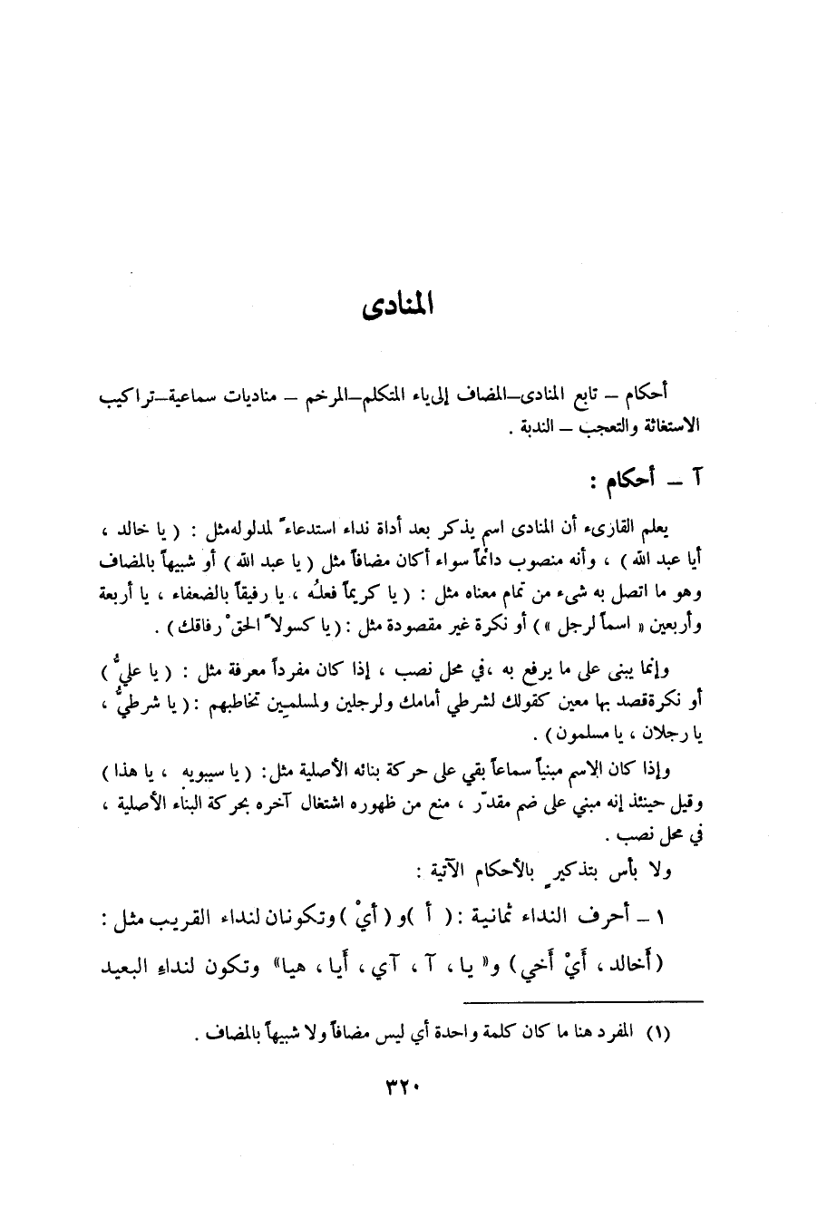أحكام - تابع المنادى - المضاف إلى ياء المتكلم - المرخم - مناديات سماعية - تراكيب الاستغاثة والتعجب - الندبة