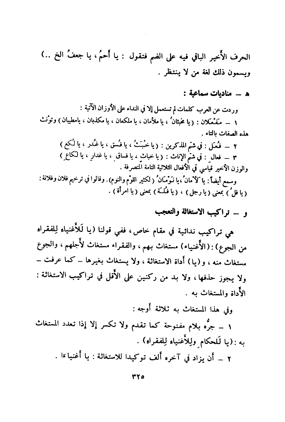 2- أَن يزاد في آخره أَلف توكيداً للاستغاثة: يا أَغنياءَا.