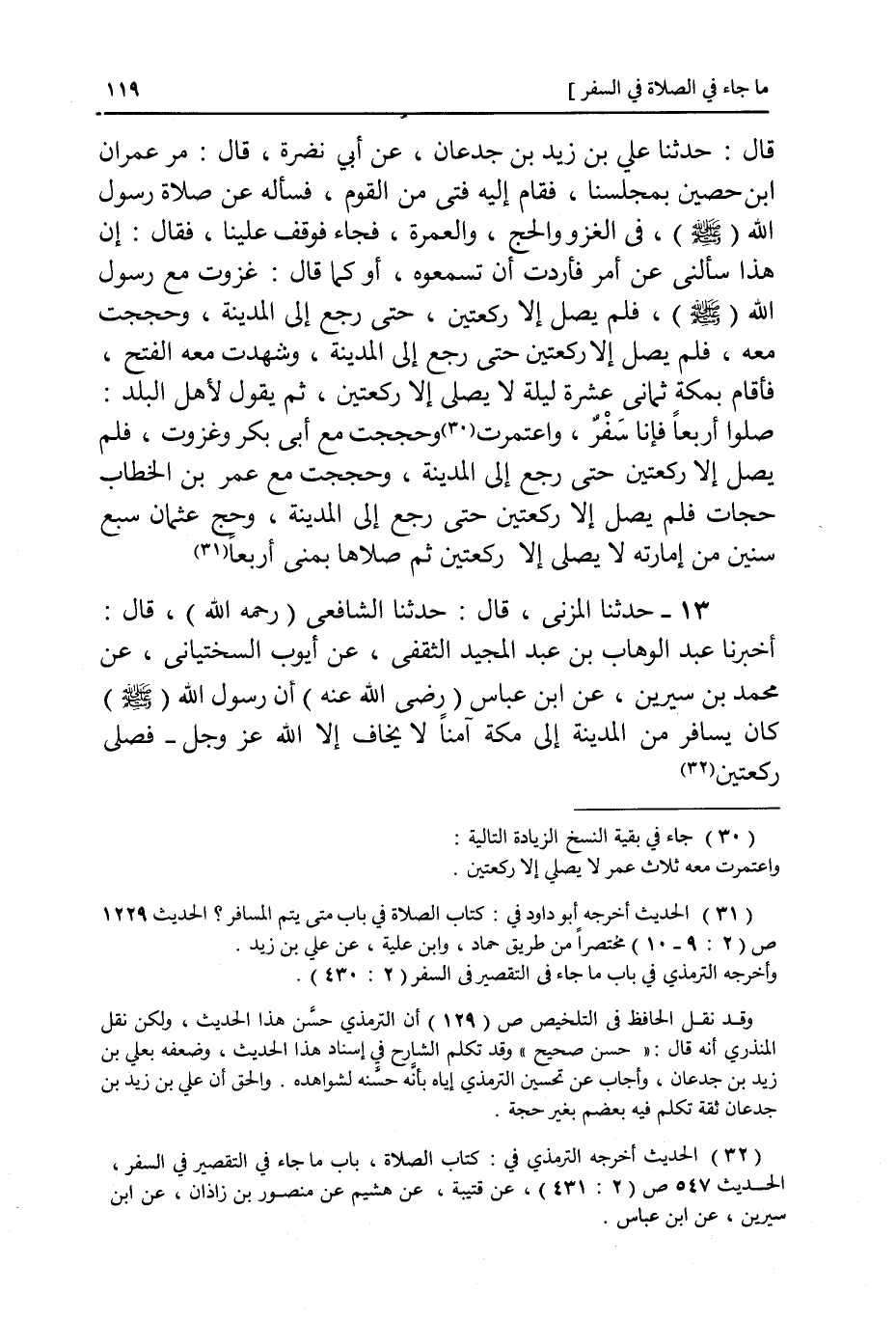 13 - وَأَنْبَأَنَا عَبْدُ الْوَهَّابِ بْنُ عَبْدِ الْمَجِيدِ الثَّقَفِيُّ، عَنْ أَيُّوبَ السَّخْتِيَانِيِّ، عَنْ مُحَمَّدِ بْنِ سِيرِينَ، عَنِ ابْنِ عَبَّاسٍ، رَضِيَ اللَّهُ عَنْهُ أَنَّ رَسُولَ اللَّهِ صَلَّى اللهُ عَلَيْهِ وَسَلَّمَ كَانَ §يُسَافَرُ مِنَ الْمَدِينَةِ إِلَى مَكَّةَ آمِنًا لَا يَخَافُ إِلَّا اللَّهَ عَزَّ وَجَلَّ , يُصَلِّي رَكْعَتَيْنِ