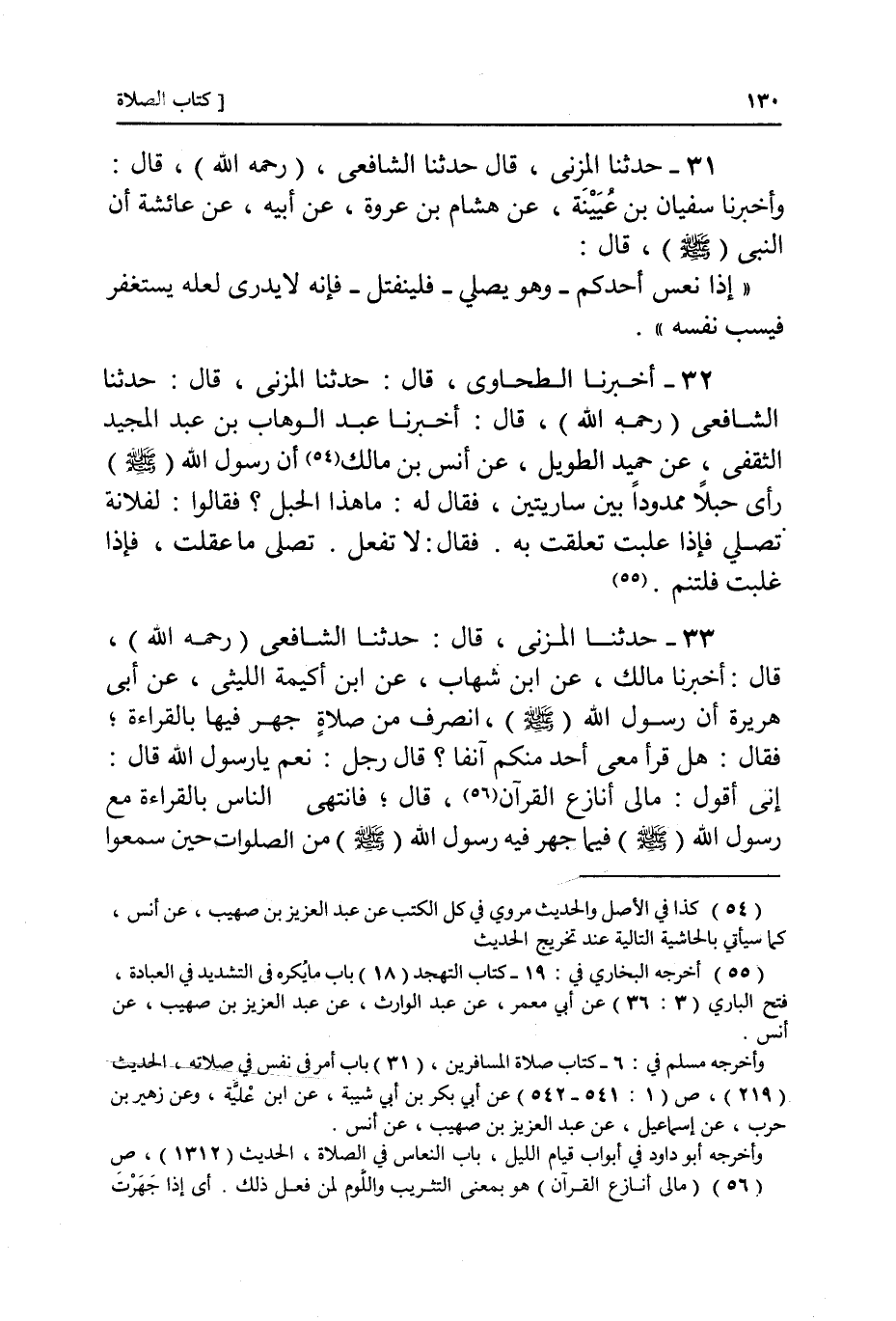 33 - أَنْبَأَنَا مَالِكٌ، عَنِ ابْنِ شِهَابٍ، عَنِ ابْنِ أُكَيْمَةَ اللَّيْثِيِّ، عَنْ أَبِي هُرَيْرَةَ، أَنَّ رَسُولَ اللَّهِ صَلَّى اللهُ عَلَيْهِ وَسَلَّمَ انْصَرَفَ مِنْ صَلَاةٍ جَهَرَ فِيهَا بِالْقِرَاءَةِ فَقَالَ: «هَلْ قَرَأَ مَعِي أَحَدٌ مِنْكُمْ آنِفًا؟» قَالَ رَجُلٌ: نَعَمْ يَا رَسُولَ اللَّهِ. قَالَ: " §إِنِّي أَقُولُ: مَا لِيَ أُنَازَعُ الْقُرْآنَ؟ " قَالَ: فَانْتَهَى النَّاسُ بِالْقِرَاءَةِ مَعَ رَسُولِ اللَّهِ صَلَّى اللهُ عَلَيْهِ وَسَلَّمَ فِيمَا جَهَرَ فِيهِ رَسُولُ اللَّهِ صَلَّى اللهُ عَلَيْهِ وَسَلَّمَ مِنَ الصَّلَوَاتِ حِينَ سَمِعُوا -[131]- ذَلِكَ مِنْ رَسُولِ اللَّهِ صَلَّى اللهُ عَلَيْهِ وَسَلَّمَ