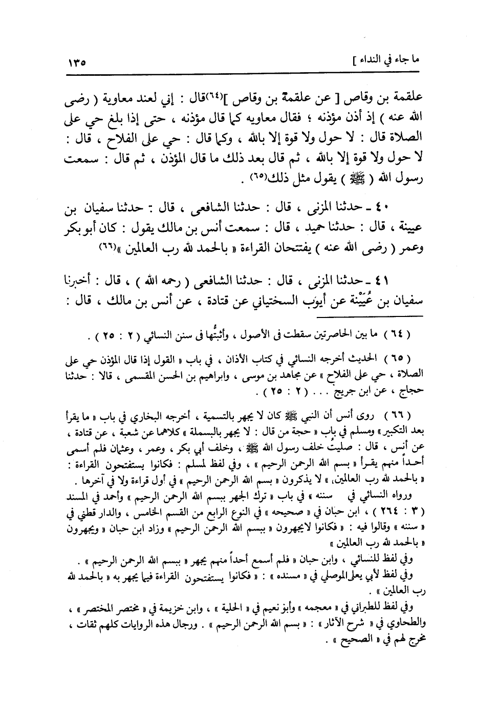 40 - حَدَّثَنَا سُفْيَانُ بْنُ عُيَيْنَةَ، قَالَ: حَدَّثَنَا حُمَيْدٌ، قَالَ: سَمِعْتُ أَنَسَ بْنَ مَالِكٍ، يَقُولُ: كَانَ أَبُو بَكْرٍ وَعُمَرُ رَضِيَ اللَّهُ عَنْهُمَا §يَفْتَتِحَانِ الْقِرَاءَةَ بِـ {الْحَمْدُ لِلَّهِ} [الْفَاتِحَة: 2]