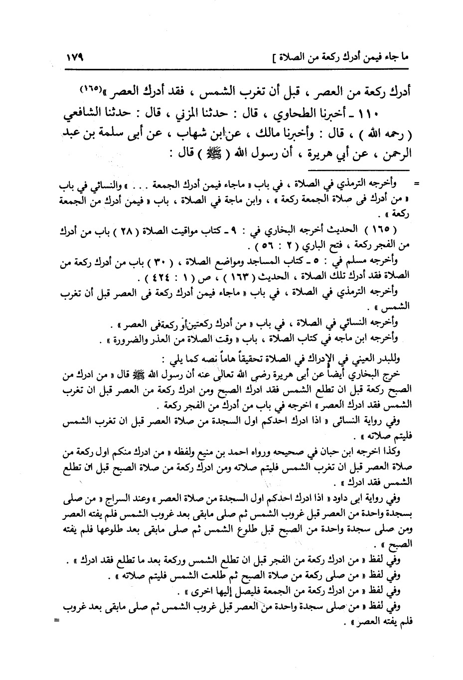 110 - أَنْبَأَنَا مَالِكٌ، عَنِ ابْنِ شِهَابٍ، عَنْ أَبِي سَلَمَةَ بْنِ عَبْدِ الرَّحْمَنِ , عَنْ أَبِي هُرَيْرَةَ، أَنَّ رَسُولَ اللَّهِ صَلَّى اللهُ عَلَيْهِ وَسَلَّمَ قَالَ -[185]-: «§مَنْ أَدْرَكَ رَكْعَةً مِنَ الصَّلَاةِ فَقَدْ أَدْرَكَ الصَّلَاةَ»