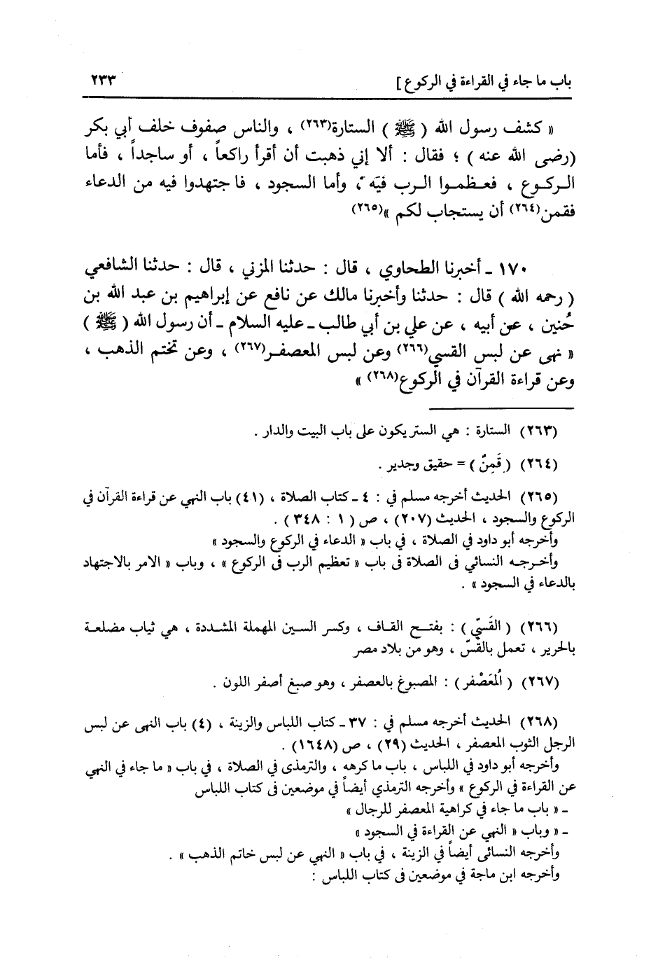 170 - أَنْبَأَنَا مَالِكٌ، عَنْ نَافِعٍ، عَنْ إِبْرَاهِيمَ بْنِ عَبْدِ اللَّهِ بْنِ حُنَيْنٍ، عَنْ أَبِيهِ، عَنْ عَلِيِّ بْنِ أَبِي طَالِبٍ، أَنَّ رَسُولَ اللَّهِ صَلَّى اللهُ عَلَيْهِ وَسَلَّمَ §نَهَى عَنْ لُبْسِ الْقَسِّيِّ وَعَنْ لُبْسِ الْمُعَصْفَرِ وَعَنْ تَخَتُّمِ الذَّهَبِ وَعَنْ قِرَاءَةِ الْقُرْآنِ فِي الرُّكُوعِ