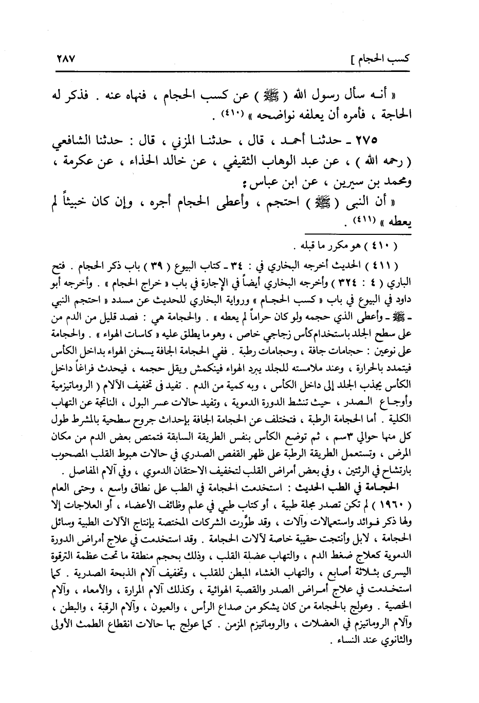 275 - عَنْ عَبْدِ الْوَهَّابِ الثَّقَفِيِّ، عَنْ خَالِدٍ الْحَذَّاءِ، عَنْ عِكْرِمَةَ، وَمُحَمَّدِ بْنِ سِيرِينَ، عَنِ ابْنِ عَبَّاسٍ، أَنَّ النَّبِيَّ صَلَّى اللهُ عَلَيْهِ وَسَلَّمَ §احْتَجَمَ وَأَعْطَى الْحَجَّامَ أَجْرَهُ وَلَوْ كَانَ خَبِيثًا لَمْ يُعْطِهِ