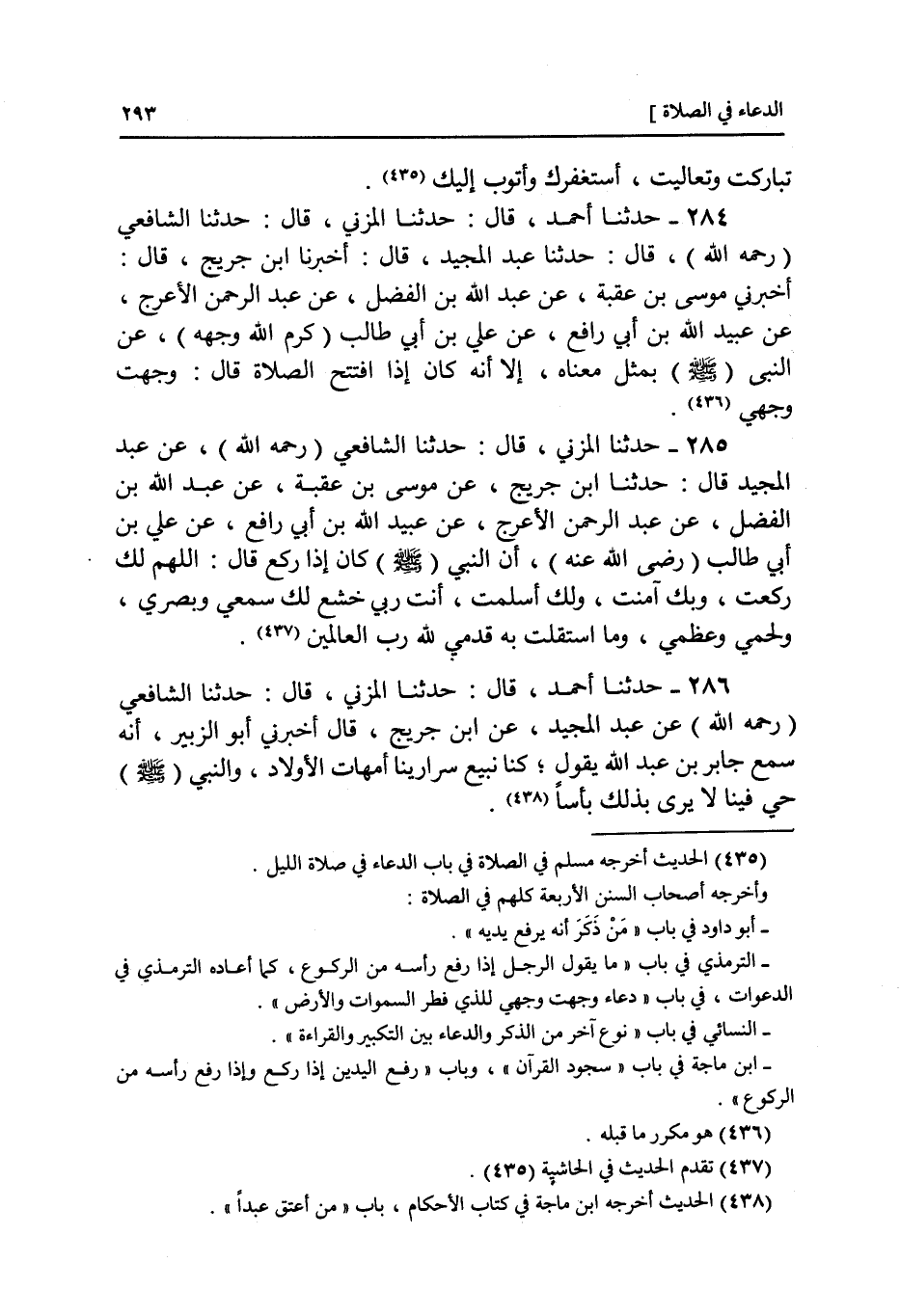 285 - عَنْ عَبْدِ الْمَجِيدِ، قَالَ: حَدَّثَنَا ابْنُ جُرَيْجٍ، عَنْ مُوسَى بْنِ عُقْبَةَ، عَنْ عَبْدِ اللَّهِ بْنِ الْفَضْلِ، عَنْ عَبْدِ الرَّحْمَنِ الْأَعْرَجِ، عَنْ عُبَيْدِ اللَّهِ بْنِ أَبِي رَافِعٍ , عَنْ عَلِيِّ بْنِ أَبِي طَالِبٍ، رَضِيَ اللَّهُ عَنْهُ أَنَّ النَّبِيَّ صَلَّى اللهُ عَلَيْهِ وَسَلَّمَ كَانَ إِذَا رَكَعَ قَالَ: «اللَّهُمَّ §لَكَ رَكَعْتُ وَبِكَ آمَنْتُ وَلَكَ أَسْلَمْتُ أَنْتَ رَبِّي خَشَعَ لَكَ سَمْعِي وَبَصَرِي وَلَحْمِي وَعَظْمِي وَمَا اسْتَقَلَّتْ بِهِ قَدَمِي لِلَّهِ رَبِّ الْعَالَمِينَ»