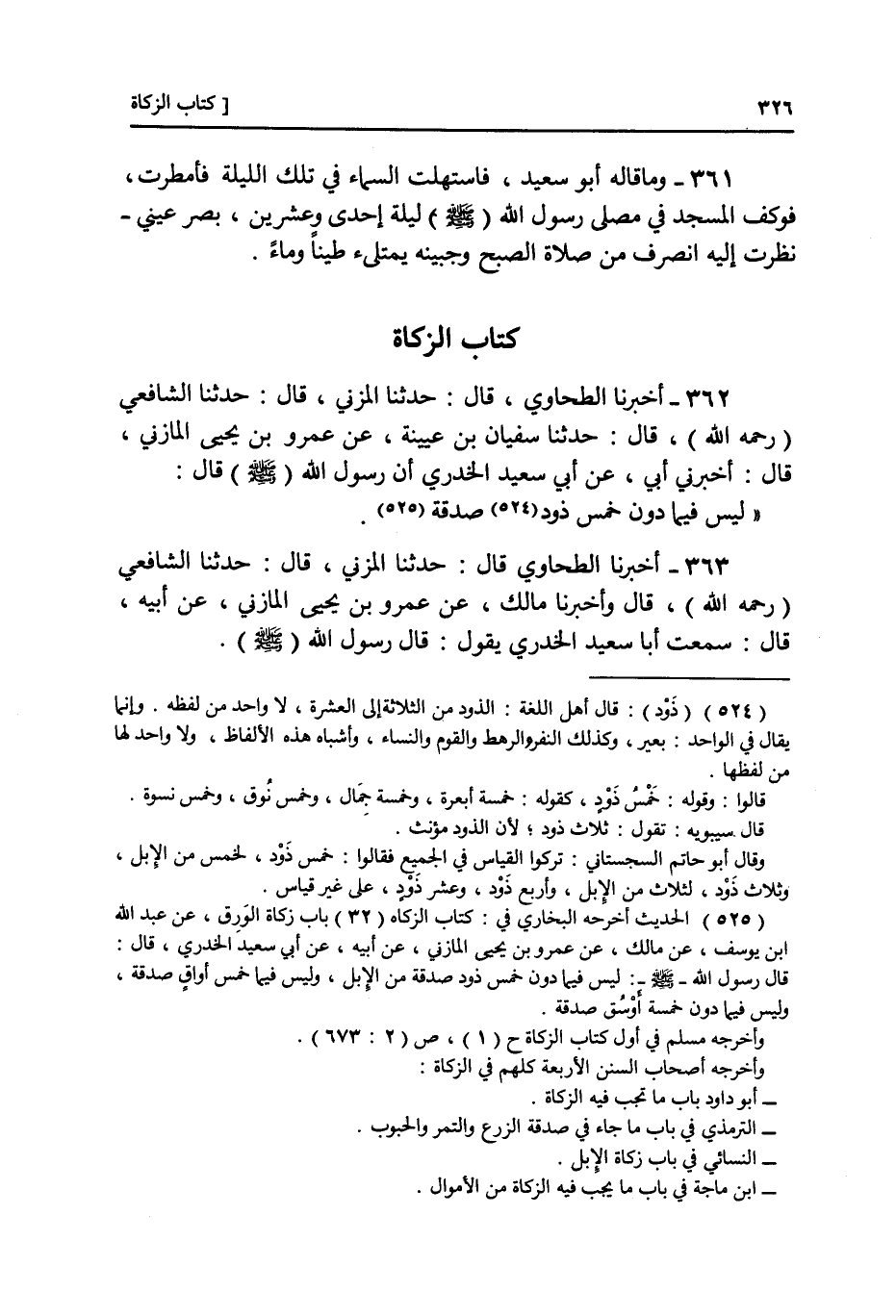 363 - وَأَخْبَرَنَا مَالِكٌ، عَنْ عَمْرِو بْنِ يَحْيَى الْمَازِنِيِّ، عَنْ أَبِيهِ، قَالَ: سَمِعْتُ أَبَا سَعِيدٍ الْخُدْرِيَّ، يَقُولُ: قَالَ رَسُولُ اللَّهِ صَلَّى اللهُ عَلَيْهِ وَسَلَّمَ -[327]-: «§لَيْسَتْ فِيمَا دُونَ خَمْسِ ذَوْدٍ صَدَقَةٌ»