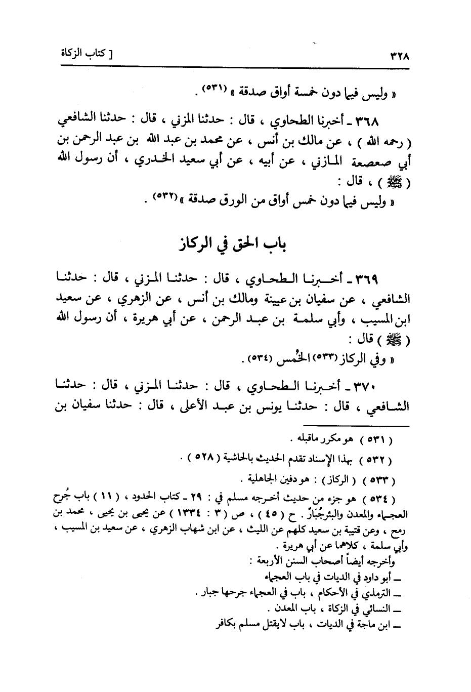 عَنْ مَالِكِ بْنِ أَنَسٍ، عَنْ مُحَمَّدِ بْنِ عَبْدِ اللَّهِ بْنِ عَبْدِ الرَّحْمَنِ بْنِ أَبِي صَعْصَعَةَ الْمَازِنِيِّ، عَنْ أَبِيهِ، عَنْ أَبِي سَعِيدٍ الْخُدْرِيِّ، أَنَّ رَسُولَ اللَّهِ صَلَّى اللهُ عَلَيْهِ وَسَلَّمَ قَالَ: «§وَلَيْسَ فِيمَا دُونَ خَمْسِ أَوَاقٍ مِنَ الْوَرِقِ صَدَقَةٌ»
