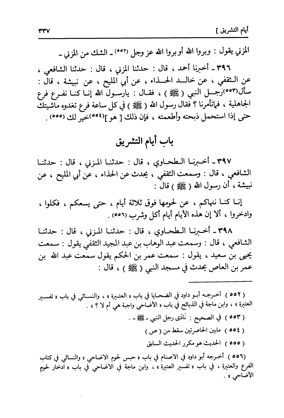 397 - وَسَمِعْتُ الثَّقَفِيَّ، يُحَدِّثُ عَنِ الْحَذَّاءِ، عَنْ أَبِي الْمَلِيحِ، عَنْ نُبَيْشَةَ، أَنَّ رَسُولَ اللَّهِ صَلَّى اللهُ عَلَيْهِ وَسَلَّمَ قَالَ: «إِنَّا §كُنَّا نَنْهَاكُمْ عَنْ لُحُومِهَا فَوْقَ ثَلَاثَةِ أَيَّامٍ حَتَّى يَسَعَكُمْ فَكُلُوا وَادَّخِرُوا أَلَا إِنَّ هَذِهِ الْأَيَّامَ أَيَّامُ أَكْلٍ وَشُرْبٍ»